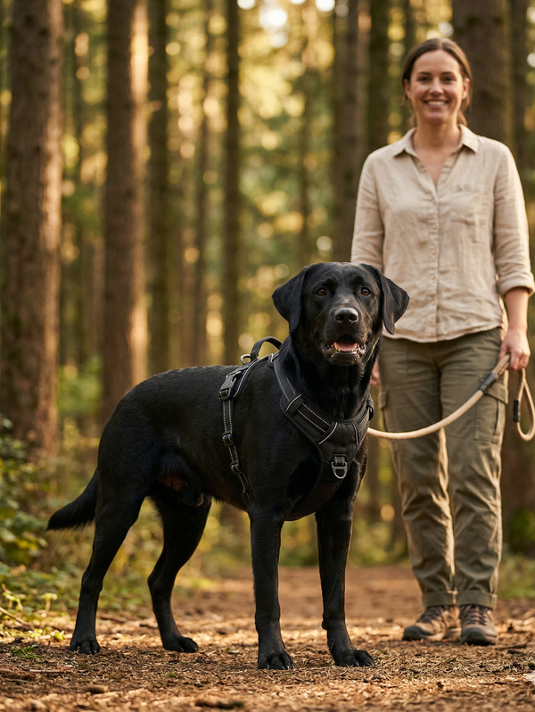 Un chien qui tire n'est pas un mauvais chien. C'est un chien excité, plein d'énergie, qui n'a pas encore appris à canaliser. La Retenue lui enseigne ce comportement en douceur — sans punition, sans harnais étrangleur, sans frustration de votre côté.